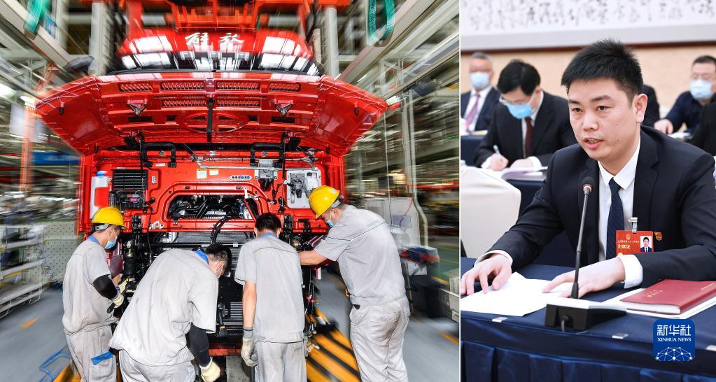 右圖:全國人大代表?xiàng)钣佬奘侵袊黄邪l(fā)總院的一名操作工。之前在攻克一項(xiàng)汽車發(fā)動(dòng)機(jī)加工核心工藝時(shí),他和團(tuán)隊(duì)要實(shí)現(xiàn)0.015毫米的加工精度,反復(fù)嘗試后終于在浩如煙海的代碼中總結(jié)出精密參數(shù),實(shí)現(xiàn)技術(shù)突破。楊永修說:“向技術(shù)無人區(qū)挺進(jìn),只要發(fā)揚(yáng)精益求精、專注執(zhí)著的工匠精神,就會(huì)迎來海闊天空?!?新華社記者 熊爭艷 攝)