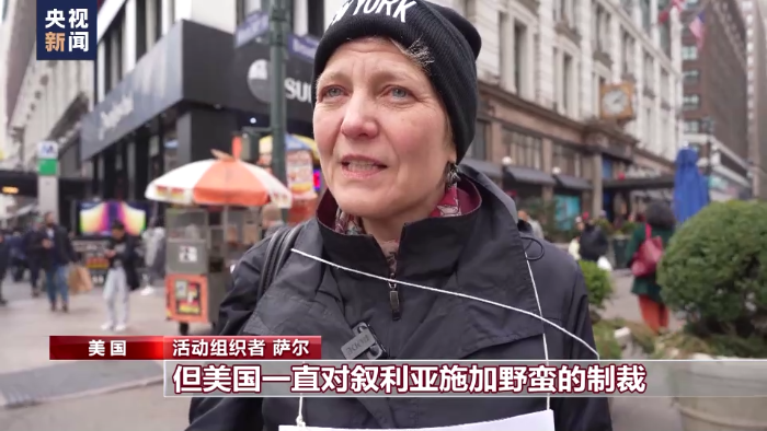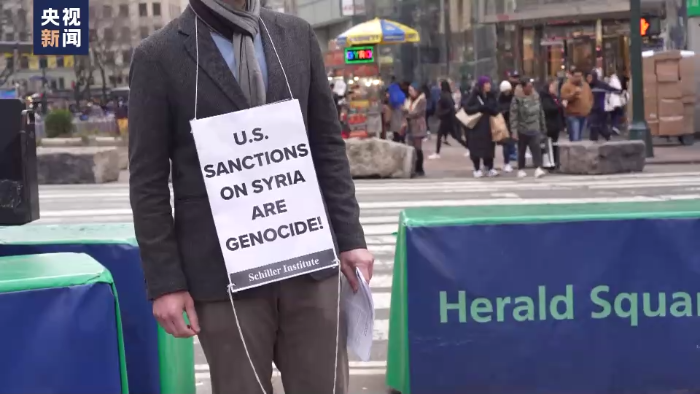 美國紐約街頭4日出現(xiàn)抗議活動,要求美國及其盟友停止針對敘利亞的制裁和封鎖。