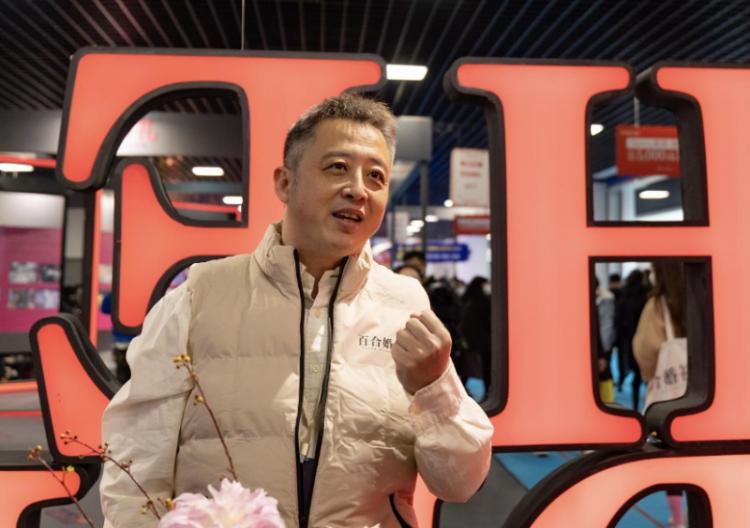 今年婚博會,百合婚禮位于展區(qū)入口處集中展示區(qū)被前來打卡的人群圍得水泄不通,洋紅色的百合婚禮LOGO、超大捧重瓣百合花束拉滿了浪漫氛圍,吸引了大批人群前來打卡拍照。本次百合婚禮旗下亮相品牌包括艾恩、匯愛、喜鋪、喜莊、愛菲爾、星享非凡、蘭club和百合愛旅等。