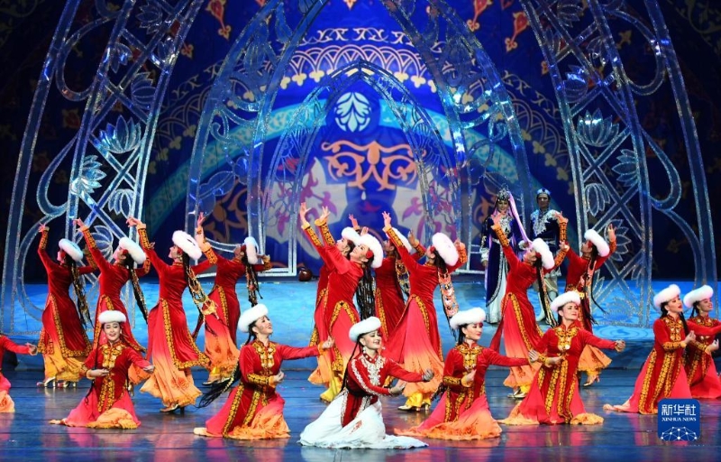 在新疆木卡姆藝術(shù)團(tuán)劇場,演員在表演《木卡姆印象》(2017年8月3日攝)。新華社記者 王菲 攝