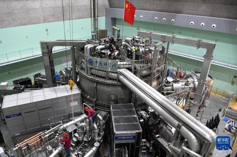 在中科院合肥物質(zhì)科學(xué)研究院,工作人員對有“人造太陽”之稱的全超導(dǎo)托卡馬克核聚變實驗裝置(EAST)進(jìn)行升級改造(2021年4月13日攝)。新華社記者 劉軍喜 攝