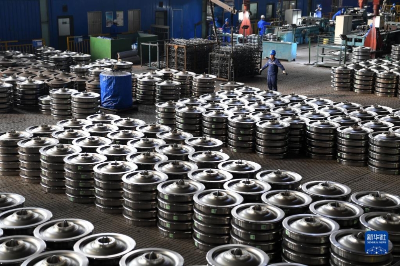 這是位于安徽省馬鞍山市的中國寶武集團(tuán)馬鋼軌交材料科技有限公司數(shù)字車輪智慧工廠(2022年11月8日攝)。新華社記者 劉軍喜 攝