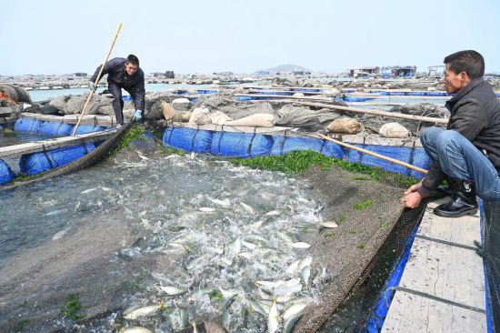 3月2日,漁民在東山縣銅陵鎮(zhèn)豐匯水產(chǎn)巴浪魚優(yōu)新品種推廣示范基地捕撈巴浪魚。新華社記者林善傳 攝