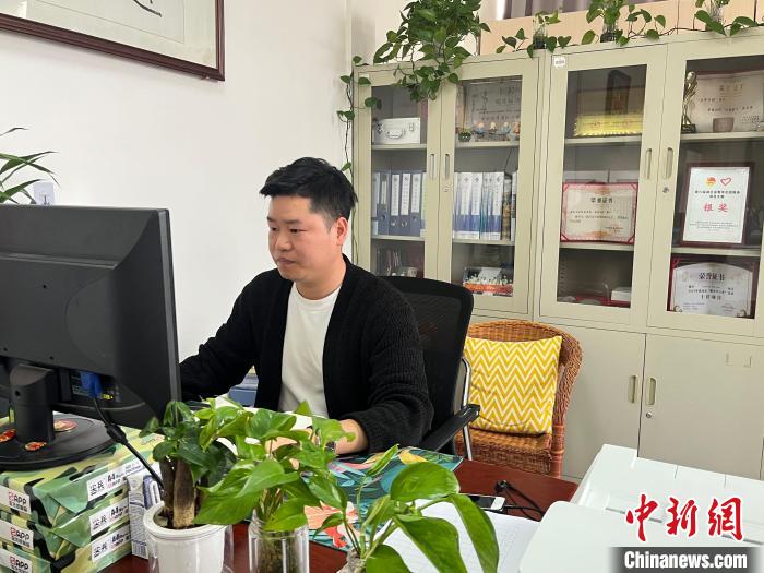 圖為武漢工程科技學(xué)院藝術(shù)與傳媒學(xué)院團總支書記余進文正在工作 武一力 攝