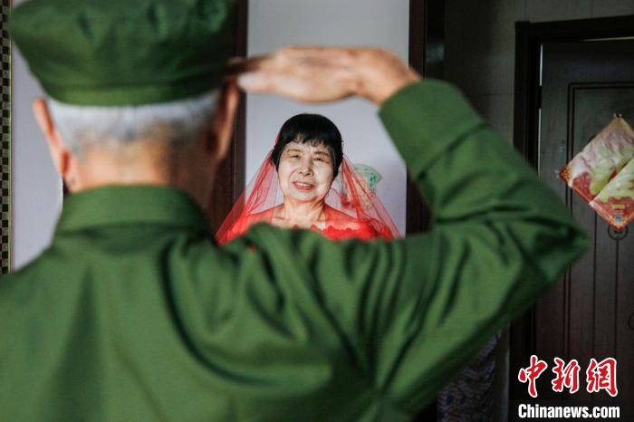 在“圓夢計劃”成員王辰羽格看來,每一張婚紗照的背后,都是一段“不老的愛情故事”。2022年,她前往石家莊拍攝婚紗照。20世紀60年代,照片主人公任金玉還是一名黑龍江的鐵道兵,幾個月一封的家書,是這對新婚夫妻唯一的交流方式。多年來,妻子的不離不棄、默默陪伴,成為他在異鄉(xiāng)工作的精神動力。夫婦二人已攜手走過半個多世紀,照片中,任金玉再次換上軍裝,舉起右手向穿著婚紗的妻子敬禮,倆人對視而笑的畫面,被永遠定格在照片里。