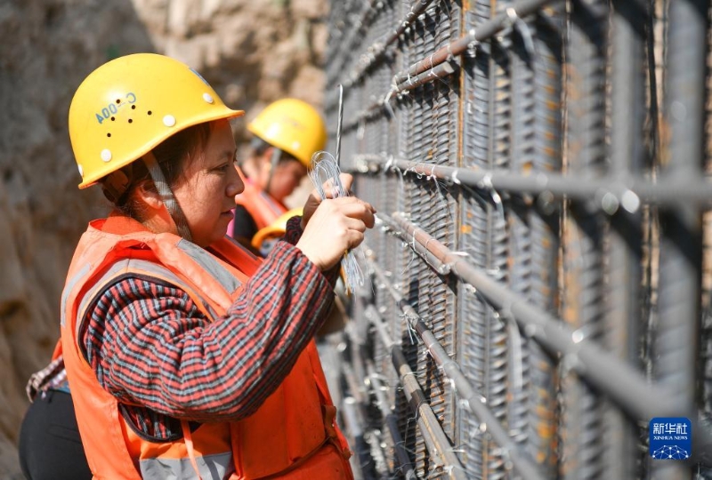 3月8日,在位于陜西省西安市國際港務區(qū)的水流路跨灞河大橋項目施工現(xiàn)場,中建三局西北公司鋼筋工楊瓊華在施工現(xiàn)場工作。