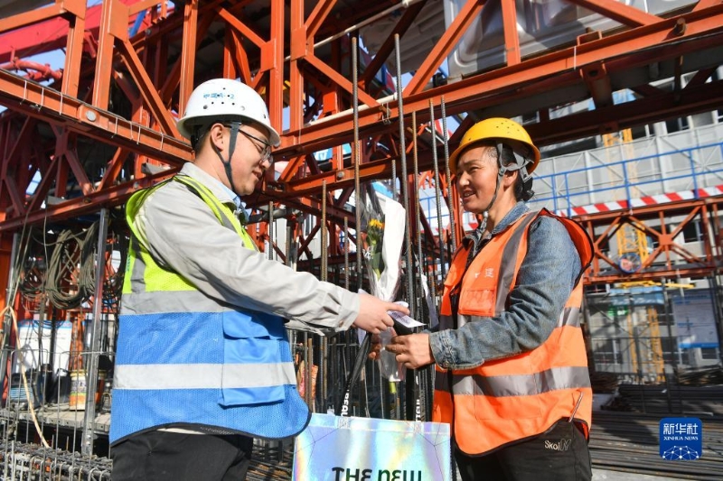 “三八”國際勞動婦女節(jié)當天,在陜西省西安市部分施工項目工地上,不少女性工友堅守城市建設一線,承擔著吊塔指揮、捆扎鋼筋、場地維護等工作,用汗水撐起建筑工地“半邊天”。項目承建方準備了鮮花等禮品,為女工友們送上節(jié)日祝福。