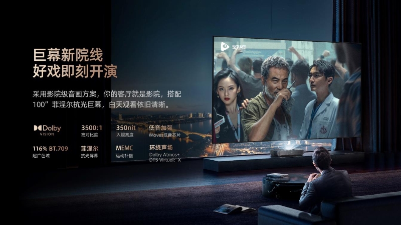 沉浸觀影的前提是畫面柔和可親近,傳統(tǒng)液晶電視的成像方式是背光透過屏幕直射入人眼,畫面侵略感較強(qiáng),近距離看會(huì)比較刺眼,相比之下,激光電視反射成像,光線柔和,畫面無侵略感,3.5米即可觀看100吋巨幕,讓觀影沉浸感與護(hù)眼健康兼得,打造理想家庭影院。