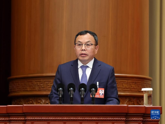 3月9日,全國(guó)政協(xié)十四屆一次會(huì)議舉行視頻會(huì)議,委員作大會(huì)發(fā)言。這是魏青松委員在主會(huì)場(chǎng)作大會(huì)發(fā)言。新華社記者 丁海濤 攝
