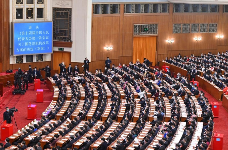 3月10日,十四屆全國人大一次會議在北京人民大會堂舉行第三次全體會議。