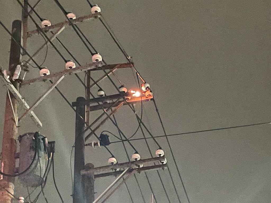 電線桿上冒火花,臺電公司說明為沿海地區(qū)鹽霧害所造成。(臺電提供/呂筱蟬桃園傳真)