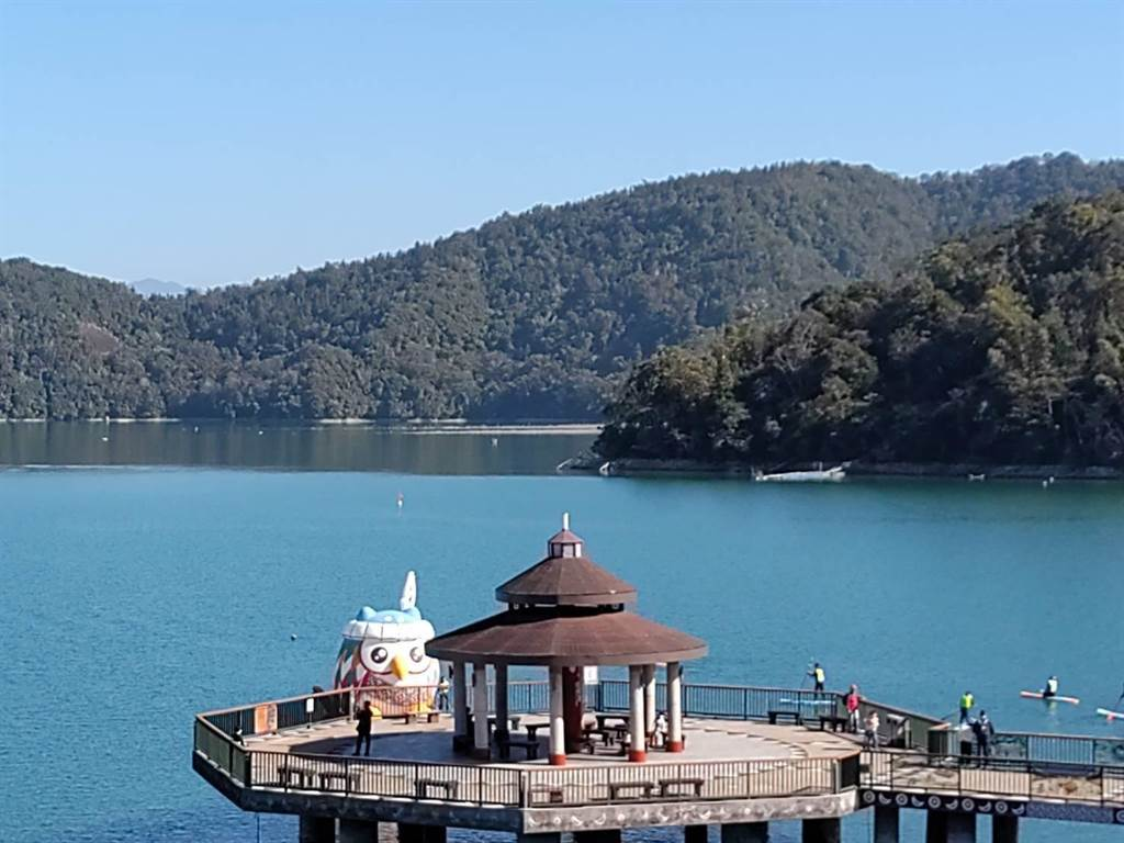 “邵邵”在南投燈會結束后移回伊達邵碼頭,繼續(xù)在日月潭畔散播守護靈鳥的可愛魅力。(日月潭風管處提供/楊靜茹南投傳真)