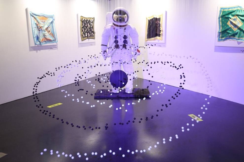 展覽共分為四個(gè)展區(qū),均以“奢品美學(xué)定制絲巾”進(jìn)行貫穿,用以闡述每個(gè)展區(qū)的主題。展區(qū)一為“保時(shí)捷美學(xué)”主題絲巾展,以明亮的色彩表達(dá)“跑車”的靈動(dòng)感;展區(qū)二創(chuàng)意地從空中懸掛耳麥,讓參展的人們可以自由地佩戴耳麥,傾聽來自產(chǎn)品的“故事”;展區(qū)三展覽的絲巾以“NASA”為主題,表達(dá)科幻與高級(jí)的結(jié)合,還運(yùn)用裝置藝術(shù)形式繪制了一幅立體的星際圖案與星空夢幻產(chǎn)生連接,讓夢想穿越成生活的組成部分;展區(qū)四以“菲拉格慕香氛”為主題,包括絲巾展、氣球懸掛香片展,以絲巾從視覺上帶來輕奢效果,以香片從味覺上帶來明媚生活的愉悅感。同時(shí),每款絲巾都帶來細(xì)膩的、如肌膚般的觸感,讓觸覺的高級(jí)可以被真實(shí)體驗(yàn)到。