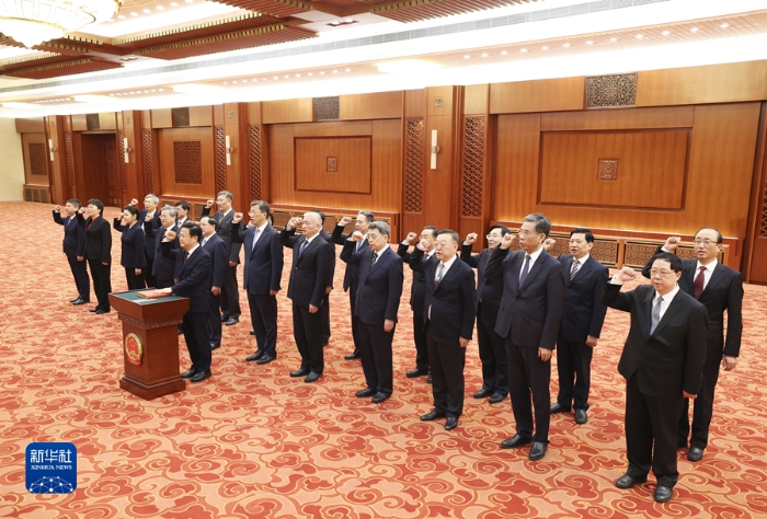3月12日,十四屆全國人大一次會議在北京人民大會堂舉行第五次全體會議。根據(jù)國務(wù)院總理李強(qiáng)的提名,經(jīng)投票表決,決定國務(wù)院各部部長、各委員會主任、中國人民銀行行長、審計(jì)長。這是國務(wù)院各部部長、各委員會主任、中國人民銀行行長、審計(jì)長進(jìn)行憲法宣誓。