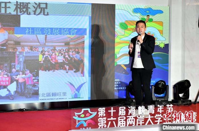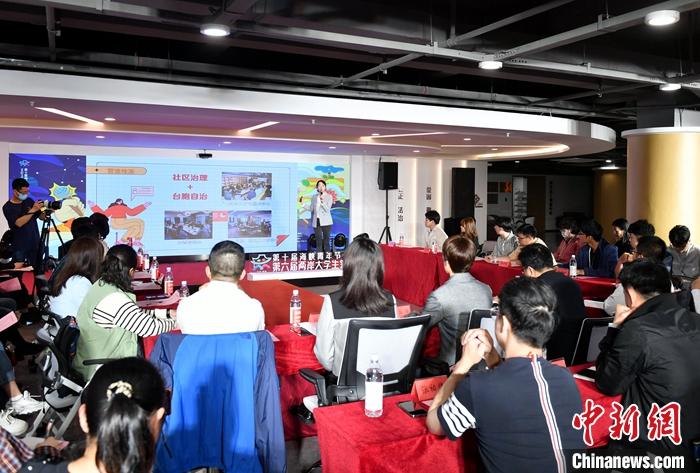 圖為3月12日,臺(tái)中市北區(qū)賴旺里里長(zhǎng)黃育嘉在兩岸青年社區(qū)治理交流活動(dòng)中發(fā)言。 中新社記者 呂明 攝