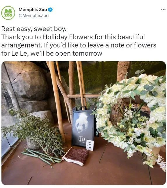 2023年2月,孟菲斯動物園宣布“樂樂”去世。動物園方面說,“樂樂”在睡覺時平靜離去。聲明指出,過去20年來,“樂樂”為數(shù)百萬游客帶來歡樂,是美中合作保護(hù)大熊貓伙伴關(guān)系的象征。