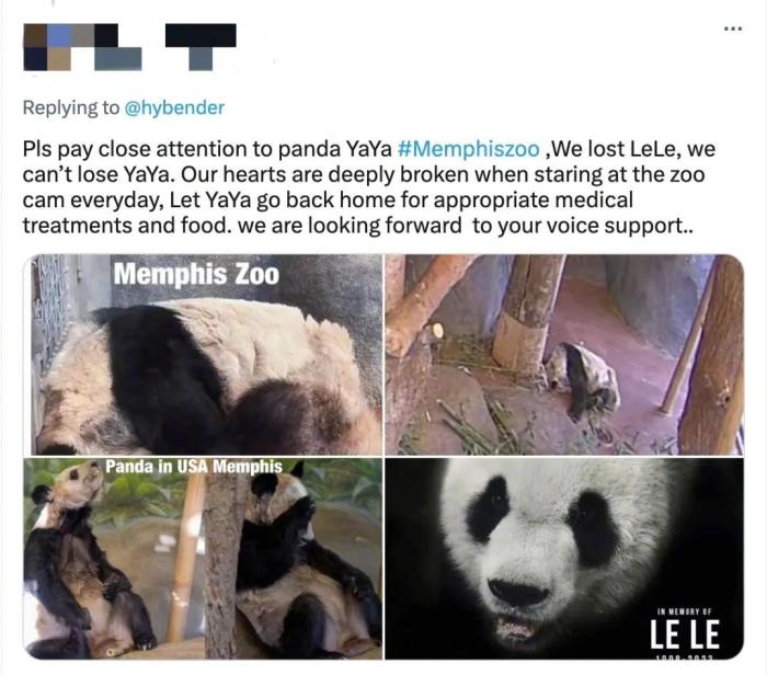 還有網(wǎng)友發(fā)文稱,每天在鏡頭前關(guān)注“丫丫”的情況,感覺“心都碎了”,“我們失去了樂樂,不能再失去丫丫”,希望“丫丫”能盡快回到中國接受治療,并號召各方共同聲援。