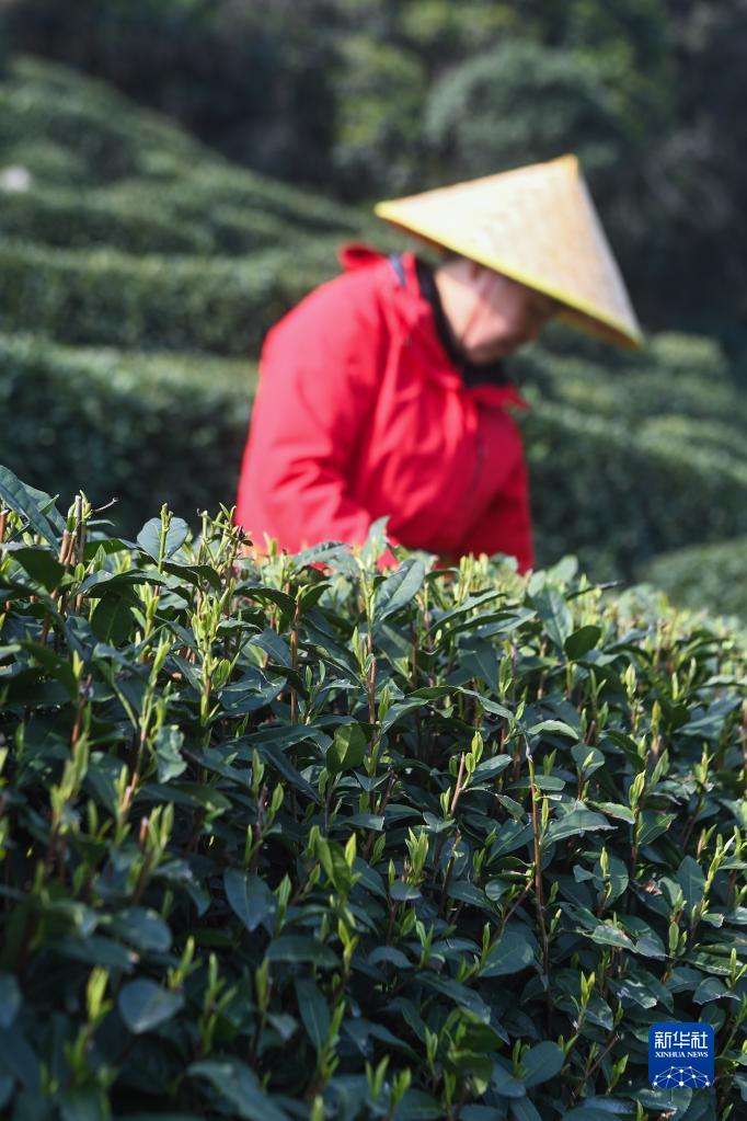 3月13日,龍井村的茶農(nóng)在采摘西湖龍井“明前茶”。