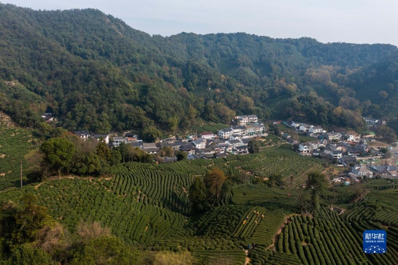 3月13日拍攝的龍井村的茶山(無(wú)人機(jī)照片)。