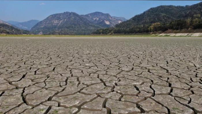 臺(tái)灣南部曾文水庫(kù)水位頻頻下探,上游水庫(kù)區(qū)底部已經(jīng)干枯,露出龜裂底部淤泥,缺水嚴(yán)重。圖片來(lái)源:臺(tái)灣聯(lián)合報(bào) 劉學(xué)圣 攝