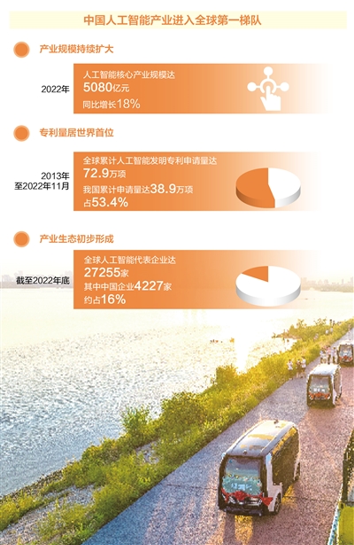 近年來(lái),我國(guó)人工智能產(chǎn)業(yè)在技術(shù)創(chuàng)新、產(chǎn)業(yè)生態(tài)、融合應(yīng)用等方面取得積極進(jìn)展,已進(jìn)入全球第一梯隊(duì)。中國(guó)信通院測(cè)算,2022年我國(guó)人工智能核心產(chǎn)業(yè)規(guī)模達(dá)5080億元,同比增長(zhǎng)18%。