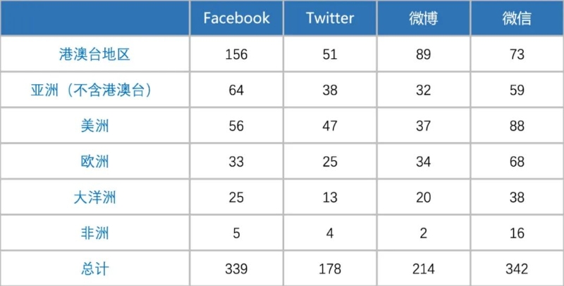 社交媒體方面:Facebook與微信是目前華文媒體布局較為廣泛的平臺,其中Facebook是亞洲華文傳媒最主要的布局平臺,微信則是其余各大洲華文媒體更加側(cè)重的平臺。
