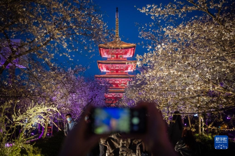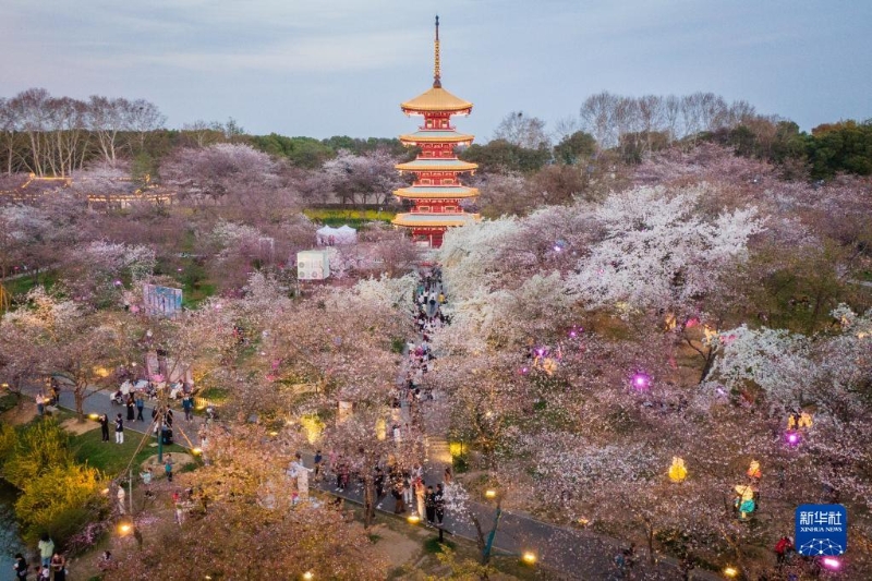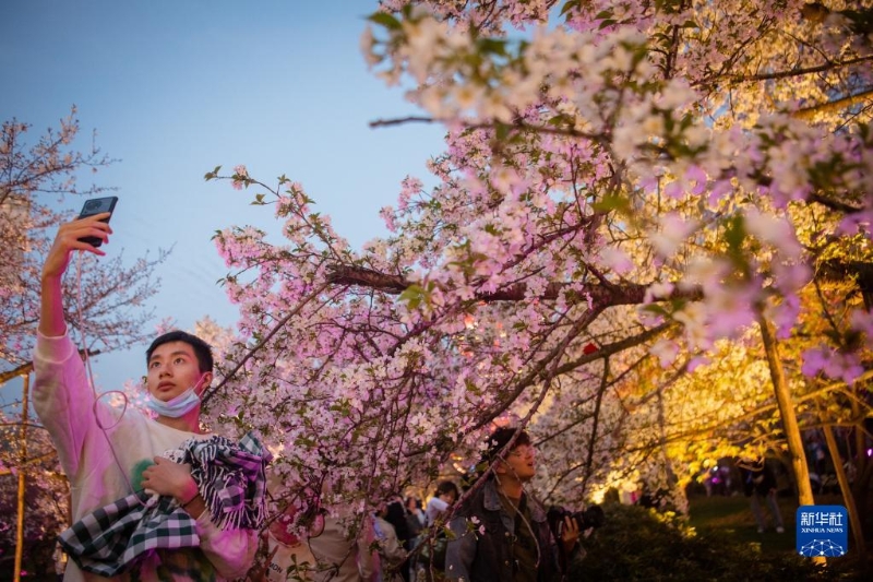 近日,湖北武漢東湖櫻園的櫻花競相綻放,吸引眾多游客前來踏青賞花,樂享春光。
