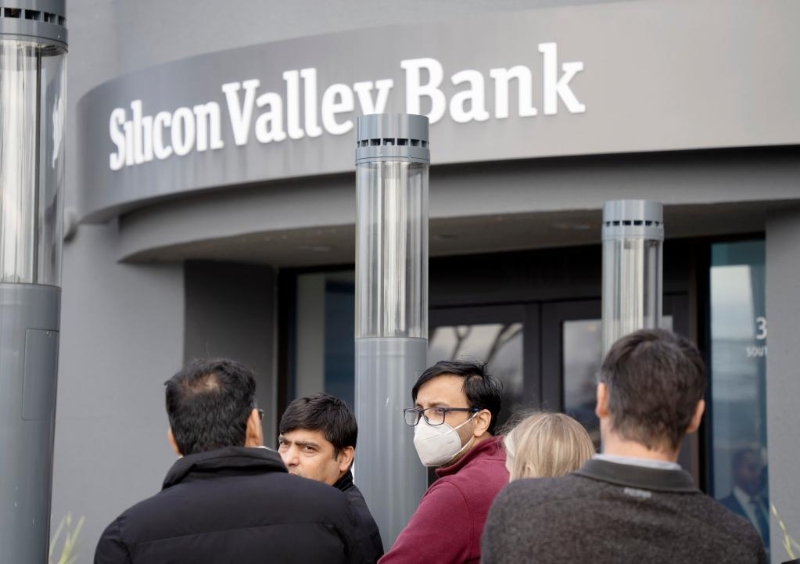 3月13日,客戶在美國加利福尼亞州圣克拉拉市硅谷銀行總部外排隊等候辦理業(yè)務。新華社發(fā)(李建國攝)