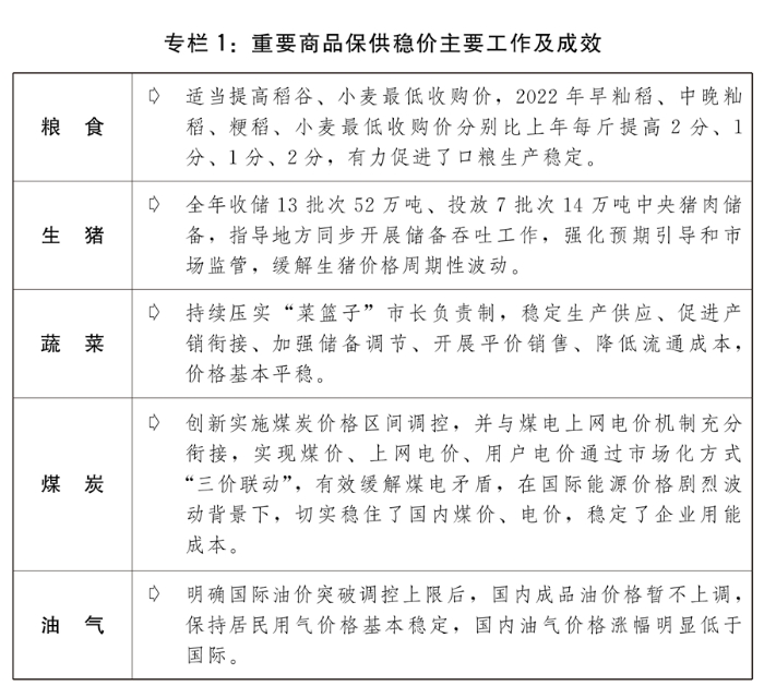 三是重要商品保供穩(wěn)價進(jìn)一步加強(qiáng)。推進(jìn)重要民生商品價格調(diào)控機(jī)制落地見效,加強(qiáng)產(chǎn)運(yùn)銷銜接和進(jìn)出口、儲備吞吐調(diào)節(jié),強(qiáng)化預(yù)期引導(dǎo),促進(jìn)價格平穩(wěn)運(yùn)行。堅持糧食最低收購價政策托底定位,適當(dāng)提高稻谷、小麥最低收購價,穩(wěn)定口糧生產(chǎn)。壓實“菜籃子”市長負(fù)責(zé)制,加強(qiáng)生豬市場調(diào)控,緩解生豬豬肉價格大幅波動。規(guī)范價格指數(shù)行為,期貨現(xiàn)貨市場聯(lián)動監(jiān)管明顯加強(qiáng)。創(chuàng)新構(gòu)建煤炭價格調(diào)控監(jiān)管長效機(jī)制,引導(dǎo)煤炭價格在合理區(qū)間運(yùn)行,積極應(yīng)對國際油氣價格大幅上漲,保障居民用電用氣需求和價格穩(wěn)定。
