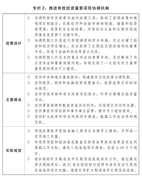 一是投資關(guān)鍵作用充分發(fā)揮。建立并高效運(yùn)轉(zhuǎn)推進(jìn)有效投資重要項目協(xié)調(diào)機(jī)制,強(qiáng)化用地、環(huán)評、用能等要素保障和重大問題協(xié)調(diào),做到“資金、要素跟著項目走”,加快推進(jìn)重點(diǎn)任務(wù)落實和重大項目建設(shè),努力形成更多實物工作量。創(chuàng)新設(shè)立政策性開發(fā)性金融工具,分兩批投放基金7400億元,為重大項目建設(shè)補(bǔ)充資本金,支持的2700多個重大項目已全部開工。通過專項再貸款與財政貼息配套支持重點(diǎn)領(lǐng)域設(shè)備更新改造,推動擴(kuò)大制造業(yè)中長期貸款投放。適度超前開展基礎(chǔ)設(shè)施投資,推進(jìn)“十四五”規(guī)劃102項重大工程實施,新型基礎(chǔ)設(shè)施加快布局,川藏鐵路全面建設(shè)取得良好開局,裝機(jī)規(guī)模全球第二大的白鶴灘水電站全面投產(chǎn),白鶴灘至江蘇、浙江特高壓直流輸電工程運(yùn)行,小洋山北側(cè)集裝箱碼頭(陸域部分)、平陸運(yùn)河工程、南水北調(diào)中線引江補(bǔ)漢工程等開工建設(shè)。發(fā)揮中央預(yù)算內(nèi)投資撬動作用。加快地方政府專項債券發(fā)行使用并進(jìn)一步擴(kuò)大支持范圍。鼓勵引導(dǎo)社會資本盤活老項目、投入新項目,促進(jìn)存量資產(chǎn)和新增投資良性循環(huán),已累計發(fā)行上市基礎(chǔ)設(shè)施領(lǐng)域不動產(chǎn)投資信托基金(REITs)試點(diǎn)項目24個,總發(fā)行規(guī)模超過780億元。全面推進(jìn)城鎮(zhèn)老舊小區(qū)改造,全國實際新開工老舊小區(qū)改造5.25萬個。城市基礎(chǔ)設(shè)施建設(shè)短板加快補(bǔ)齊,城市燃?xì)夤艿赖壤匣赂脑旆e極推進(jìn)。全國固定資產(chǎn)投資(不含農(nóng)戶)57.21萬億元,增長5.1%;其中,基礎(chǔ)設(shè)施、制造業(yè)投資分別增長9.4%、9.1%,一定程度彌補(bǔ)了消費(fèi)收縮缺口。