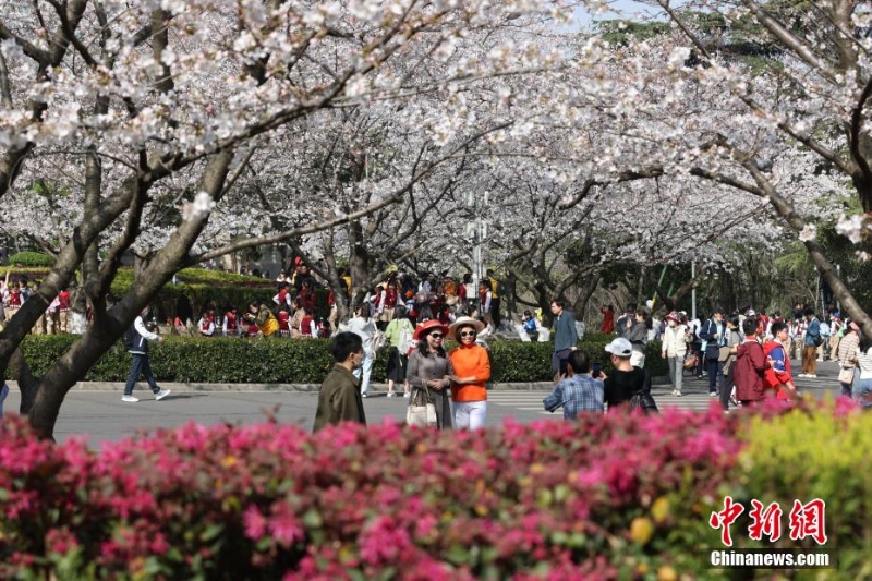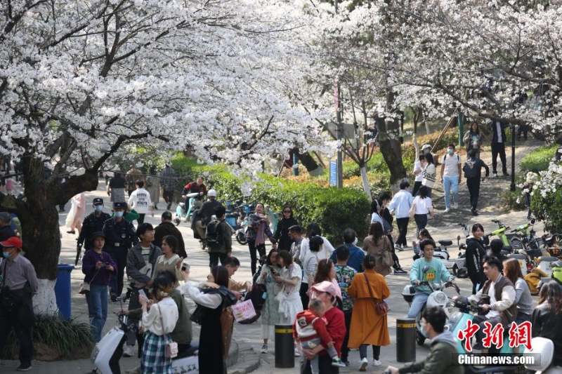 3月15日,武漢大學(xué)賞櫻預(yù)約首日,櫻花大道、鯤鵬廣場(chǎng)附近人潮涌動(dòng)。今年櫻花開放期間,武漢大學(xué)延續(xù)“實(shí)名限額、網(wǎng)絡(luò)預(yù)約、雙重核驗(yàn)”做法,面向社會(huì)公眾實(shí)行免費(fèi)預(yù)約賞櫻制,工作日每天預(yù)約限額1.5萬(wàn)人,周末每天預(yù)約限額3萬(wàn)人。此外,還將于3月18日舉辦醫(yī)護(hù)賞櫻專場(chǎng),邀請(qǐng)?jiān)踽t(yī)療隊(duì)及湖北省內(nèi)抗疫醫(yī)護(hù)人員來(lái)校賞櫻,并在弘毅門(原西門)舉行歡迎儀式。