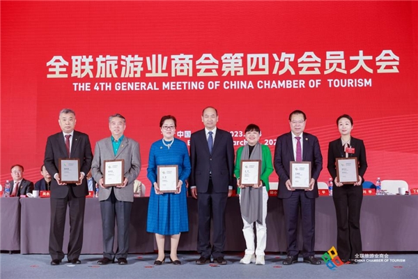 全國工商聯(lián)黨組成員、副主席邱小平(左四)為新當(dāng)選的全聯(lián)旅游業(yè)商會會長