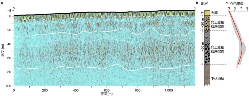 詳細(xì)的火星地下結(jié)構(gòu)和物性信息是研究火星地質(zhì)及其宜居性演化的關(guān)鍵,是火星探測的重要內(nèi)容之一。中國科學(xué)院地質(zhì)與地球物理研究所陳凌、張金海團(tuán)隊(duì)等對(duì)祝融號(hào)火星車行進(jìn)約4個(gè)月、探測長達(dá)1171米的低頻雷達(dá)數(shù)據(jù)進(jìn)行了深入分析和精細(xì)成像,獲得了烏托邦平原南部淺表80米之上的高精度結(jié)構(gòu)分層圖像和地層物性信息,研究發(fā)現(xiàn)該區(qū)域數(shù)米厚的火壤層之下存在兩套向上變細(xì)的沉積層序:第一套層序位于地下約10~30米,其形成可能與距今約16億年以來短時(shí)洪水、長期風(fēng)化或重復(fù)隕石撞擊作用有關(guān);第二套層序位于地下約30~80米,可能是距今35~32億年前大型洪水事件沉積?,F(xiàn)今該區(qū)域80米之上未發(fā)現(xiàn)液態(tài)水存在的證據(jù),但不排除存在鹽冰的可能性。該研究揭示了現(xiàn)今火星淺表精細(xì)結(jié)構(gòu)和物性特征,提供了火星長期存在水活動(dòng)的觀測證據(jù),為深入認(rèn)識(shí)火星地質(zhì)演化與環(huán)境、氣候變遷提供了重要依據(jù)。
