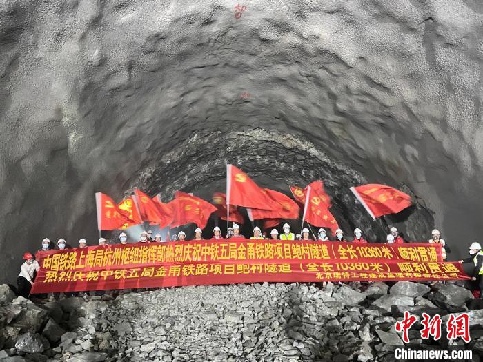 金甬鐵路鮑村隧道順利貫通?!≈袊F路上海局集團(tuán)有限公司供圖