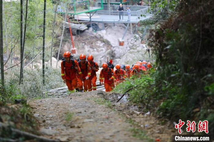 消防員攜帶救援器材尋找傷員?!⊥踔慰?攝