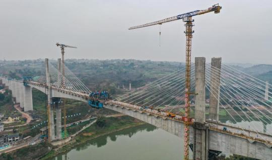 新華社成都3月19日電(記者謝佼)重慶至昆明高速鐵路(簡稱“渝昆高鐵”)控制性工程——瀘州沱江特大橋,3月18日主跨合龍。該橋地處長江上游主要支流珍稀魚類生態(tài)區(qū),為保護(hù)長江上游珍稀魚類,該橋采用雙柱式V型橋塔、空間扇形索面斜拉索的創(chuàng)新設(shè)計,實現(xiàn)河道內(nèi)無橋墩、主跨一跨過沱江。