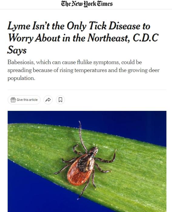 中新網(wǎng)3月19日電 據(jù)《紐約時(shí)報(bào)》報(bào)道,美國(guó)疾病控制與預(yù)防中心(CDC)的研究人員日前報(bào)告稱,2011年至2019年間,美東北部部分州蜱傳疾病(也稱為巴貝斯蟲(chóng)病t)的病例數(shù)量增加了一倍以上。