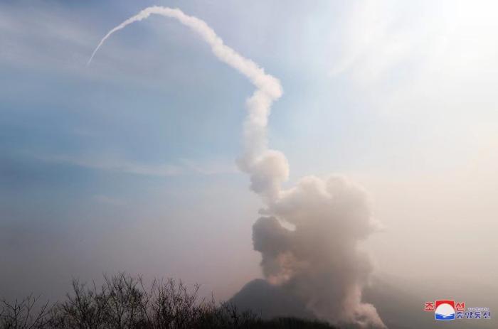 19日上午,進(jìn)行了模擬戰(zhàn)術(shù)核攻擊的彈道導(dǎo)彈發(fā)射訓(xùn)練。朝鮮國防相強(qiáng)純男、全面指揮戰(zhàn)術(shù)核武器運(yùn)用部隊(duì)的聯(lián)合部隊(duì)首長及其所屬東、西部前線各導(dǎo)彈部隊(duì)指揮官和區(qū)分隊(duì)指揮人員觀摩射擊訓(xùn)練。