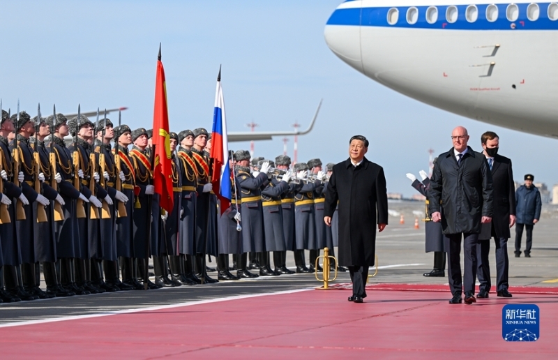 當(dāng)?shù)貢r(shí)間3月20日,國家主席習(xí)近平乘專機(jī)抵達(dá)莫斯科,應(yīng)俄羅斯總統(tǒng)普京邀請(qǐng),對(duì)俄羅斯進(jìn)行國事訪問。下午1時(shí)許,習(xí)近平乘坐的專機(jī)抵達(dá)莫斯科伏努科沃專機(jī)機(jī)場。習(xí)近平步出艙門時(shí),俄羅斯副總理切爾內(nèi)申科等政府高級(jí)官員在舷梯旁熱情迎接。俄方在機(jī)場舉行隆重迎賓儀式。軍樂團(tuán)奏中俄兩國國歌。這是習(xí)近平檢閱俄羅斯三軍儀仗隊(duì)并觀看分列式。新華社記者 謝環(huán)馳 攝