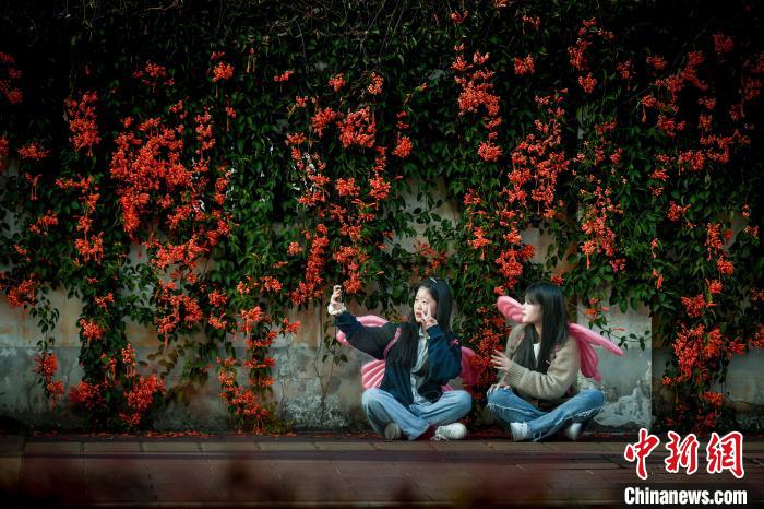 建甌城市一角,盛開的炮仗花,形成花瀑,成網(wǎng)紅打卡點?!∥河狼?攝