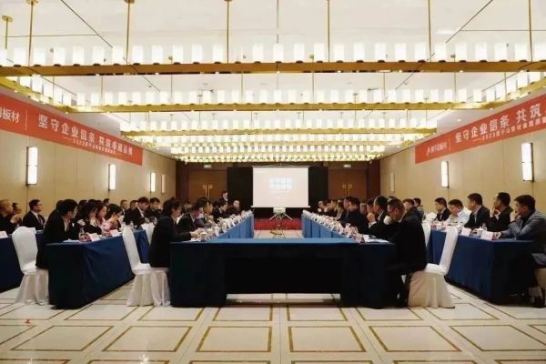 此次“質(zhì)量月”臨沂之行,浙江升華云峰新材股份有限公司、浙江省云峰莫干山家居研究院、浙江云峰莫干山營(yíng)銷有限公司、費(fèi)縣云峰莫干山裝飾材料有限公司、莫干山板材全國質(zhì)量檢察官、材料商等一眾代表一起出席會(huì)議。