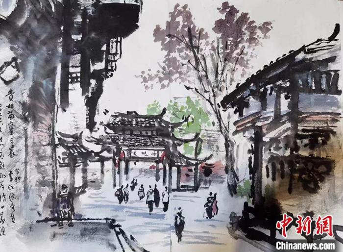 此次貴州之行,臺(tái)灣知名畫家李沃源創(chuàng)作了7幅山水畫,有美麗的櫻花園林,熱鬧的貴州苗寨之晨、古樸寧靜的肇興侗寨……春日里的貴州山水,在他的畫筆下充滿詩意和生機(jī)。