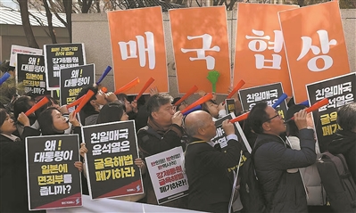民間抗議不斷。方案公布后,韓國611個民間團體和許多強征勞工受害者家屬代表,聚集在首爾市中心外交部大樓外舉行集會,要求政府撤回第三方代賠方案。部分民眾連續(xù)多日上街示威,譴責韓國政府開歷史倒車、踐踏民意、讓韓國如同回到1910年日本侵略的時代。