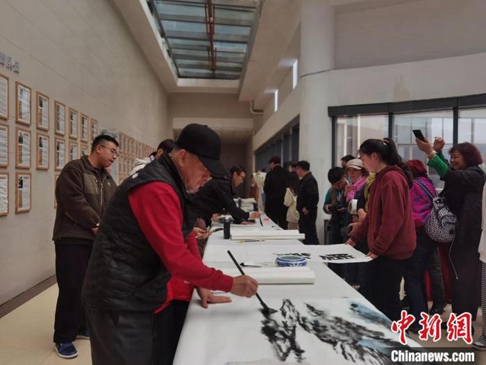圖為臺灣書畫家交流團到訪貴州民族大學,現(xiàn)場創(chuàng)作書畫作品。周燕玲 攝