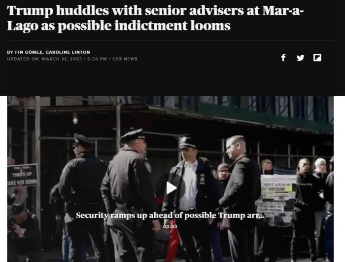 CBS報道稱,與特朗普關系密切的消息人士透露,如果起訴書被宣布,特朗普很可能會從海湖莊園飛到紐約“自首”。特朗普的一名顧問稱,他正在考慮在自首之前在曼哈頓刑事法院發(fā)表一份聲明。