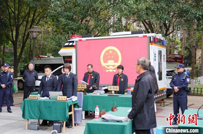 圖為巡回審理現(xiàn)場(chǎng)?!≈貞c市第五中級(jí)人民法院供圖