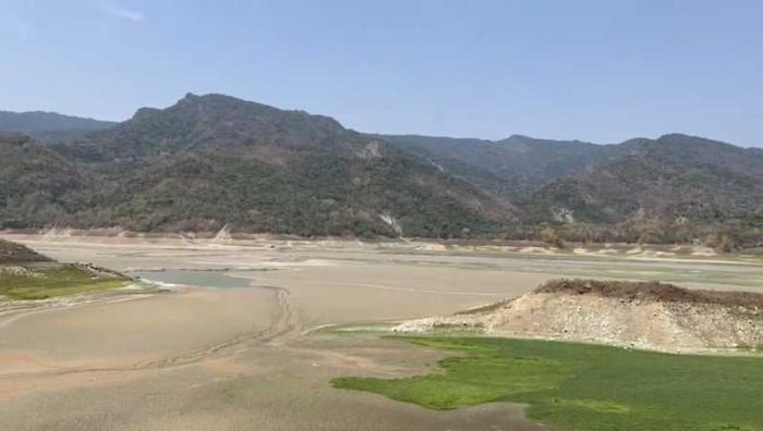 曾文水庫(kù)蓄水量減少,底部淤泥裸露、長(zhǎng)滿雜草。圖:聯(lián)合新聞網(wǎng)