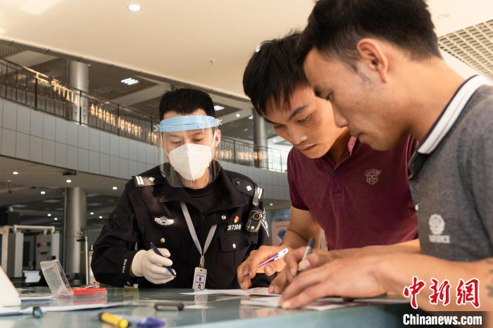 圖為民警引導游客辦理手續(xù)?!∧ズ┻厵z站供圖