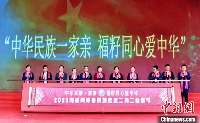 中新社福建寧德3月23日電 (林榕生)以“中華民族一家親·福籽同心愛中華”為主題的2023海峽兩岸各民族歡度“二月二”會(huì)親節(jié),23日在福建寧德福鼎市佳陽畬族鄉(xiāng)雙華村舉辦,來自海峽兩岸的各民族代表同迎會(huì)親節(jié)、共話民族團(tuán)結(jié)。