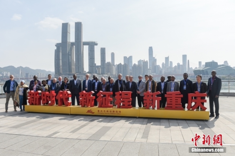 3月20日至22日,來自歐洲、非洲、亞洲的26個國家和地區(qū)的駐華使節(jié)代表團赴重慶參訪,重點考察成渝地區(qū)雙城經濟圈和西部陸海新通道建設等情況。圖為3月20日,駐華使節(jié)代表團在重慶市規(guī)劃展覽館外合影留念。中新社記者 何蓬磊 攝